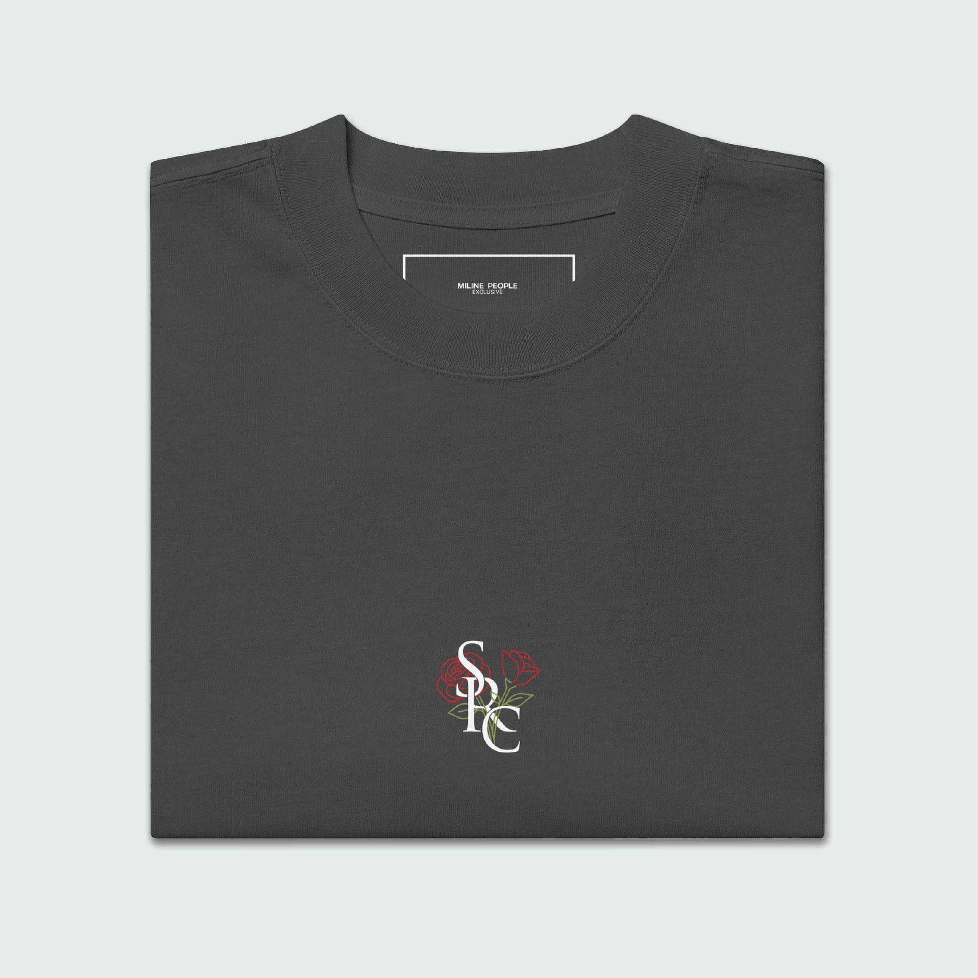 The “SRC” t-shirt embodies the essence of the Sweet Ravers Club collection, blending softness and darkness into a single statement piece. Its oversized fit enhances any layered look, while the heavyweight structure and 100% carded cotton deliver a street–ready feel with premium comfort—perfect for long nights on the dancefloor. On the front, the SRC initials rise behind delicate roses, symbolizing the duality at the heart of the collection. The back features the full “Sweet Ravers Club” name framed by roses, creating an elegant yet edgy contrast. A refined piece designed for true ravers who carry both sweetness and techno energy within.